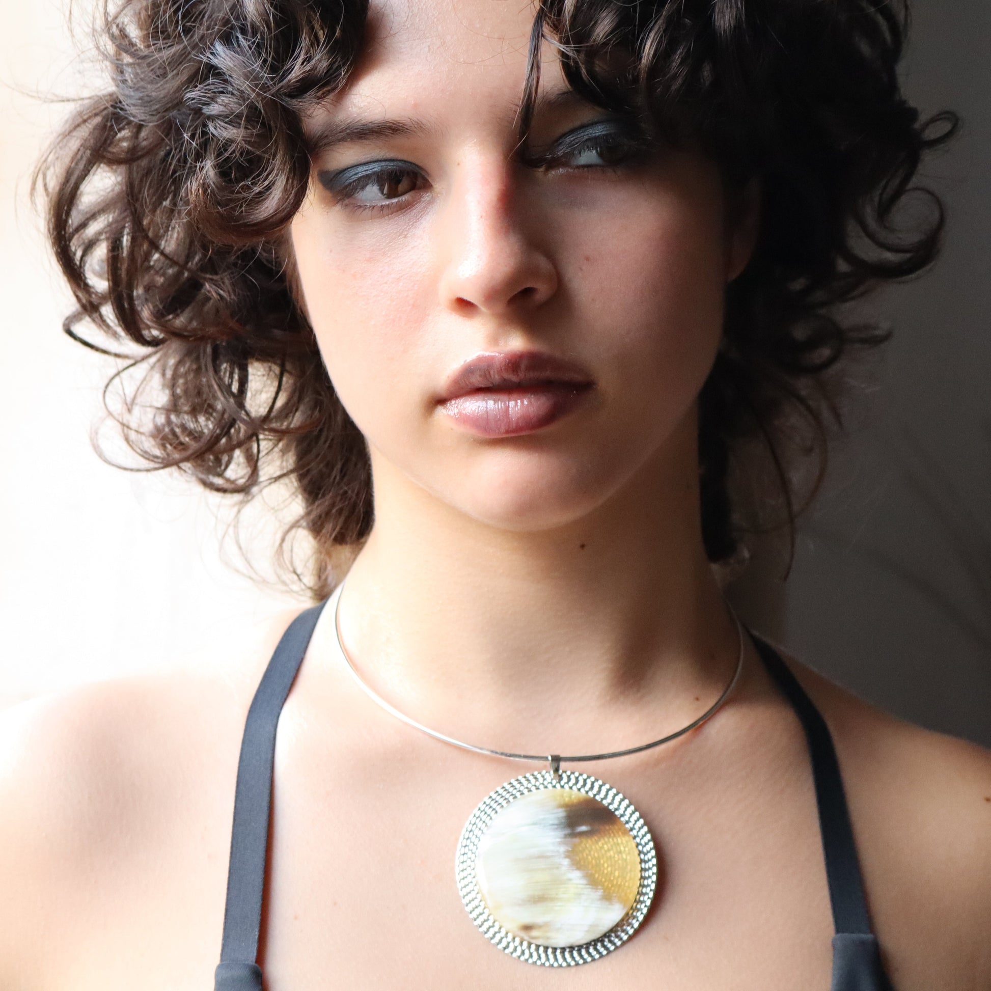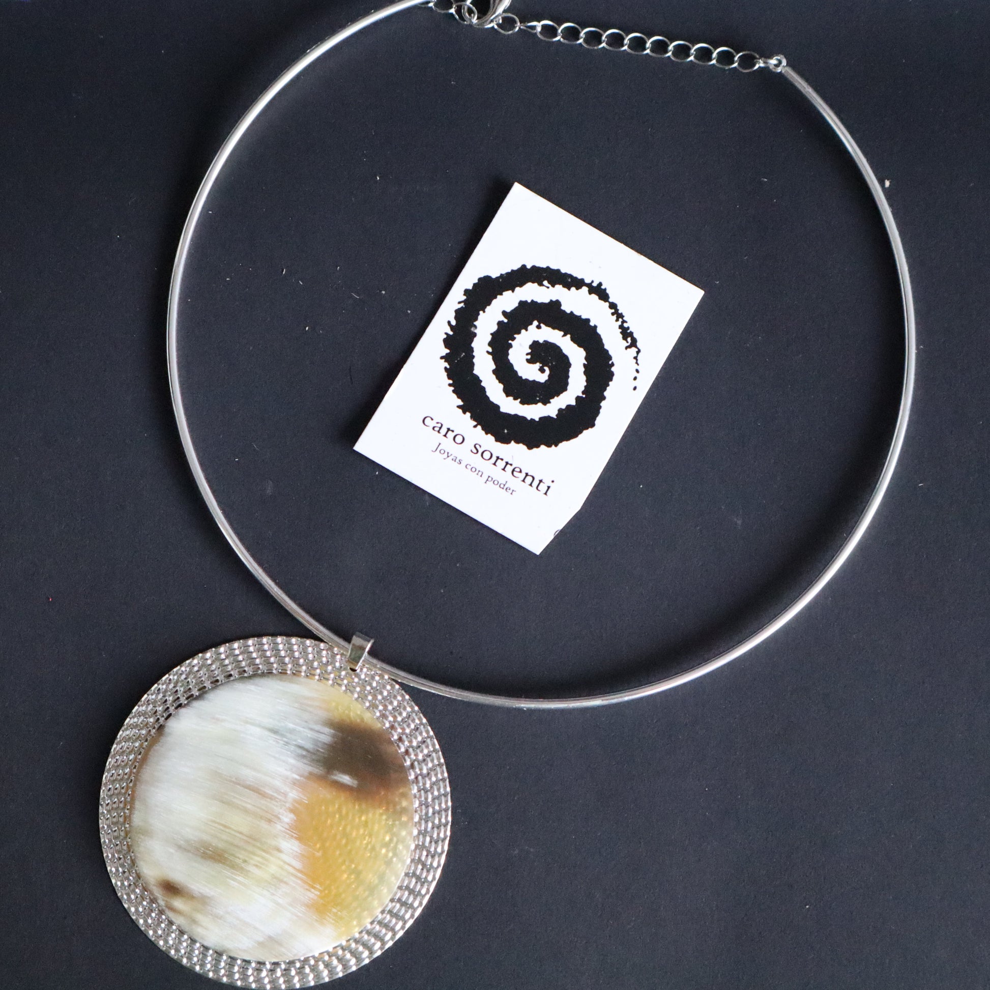 Gargantilla de acero redonda en color plata con dije de asta circular mediano de 5cm
