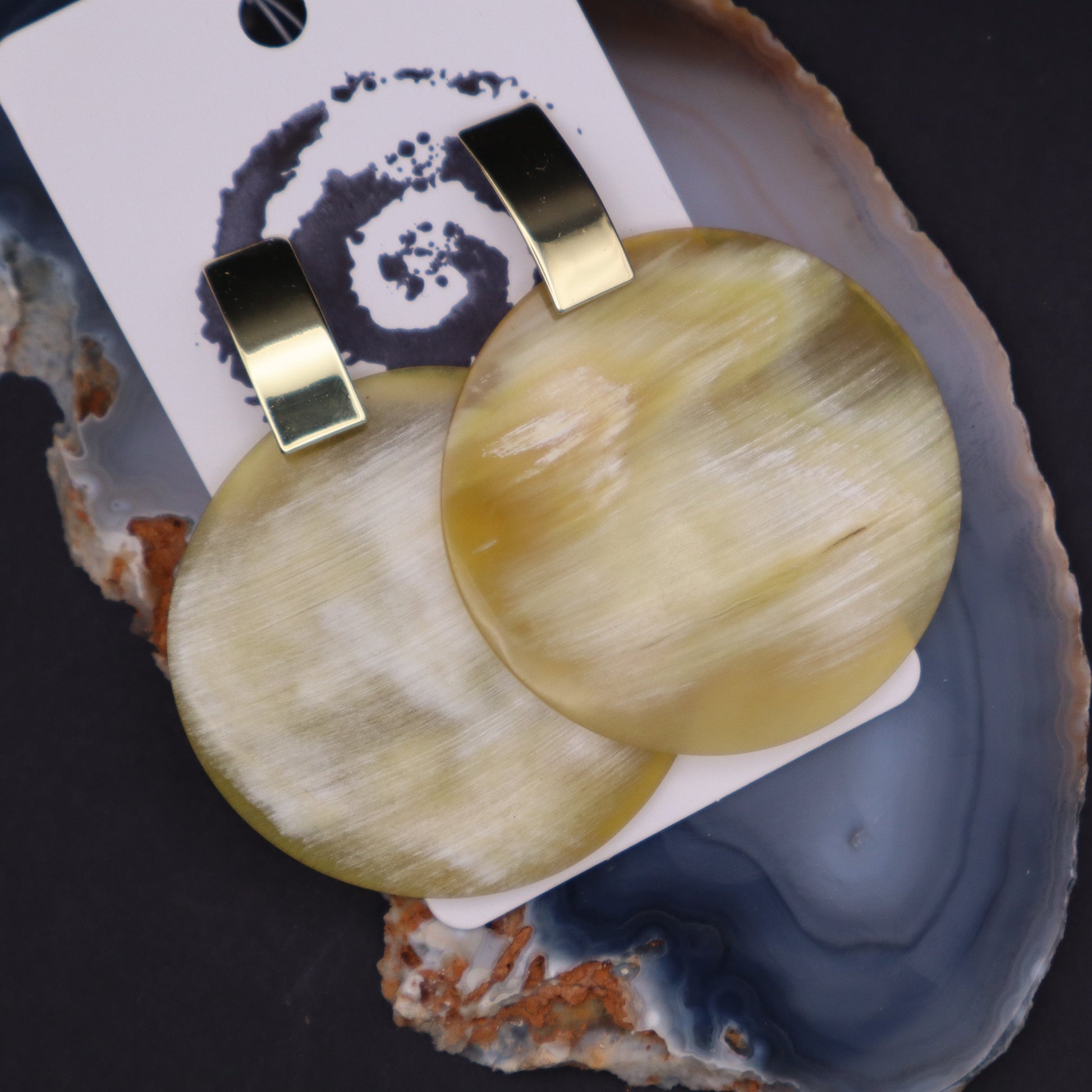 Pendientes de asta circular grande de diámetro 50mm con acero en color dorado.